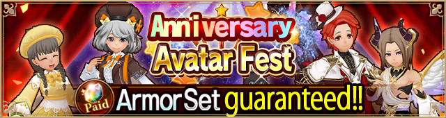 "Anniversary Avatar Fest" is available for a limited time! Win an UR ability armor with 0~4 Limit Breaks!